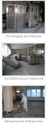 Die bei den Arbeiten entstandene kontaminierte Luft wurde komplett gefiltert und der Außenluft zugeführt.
